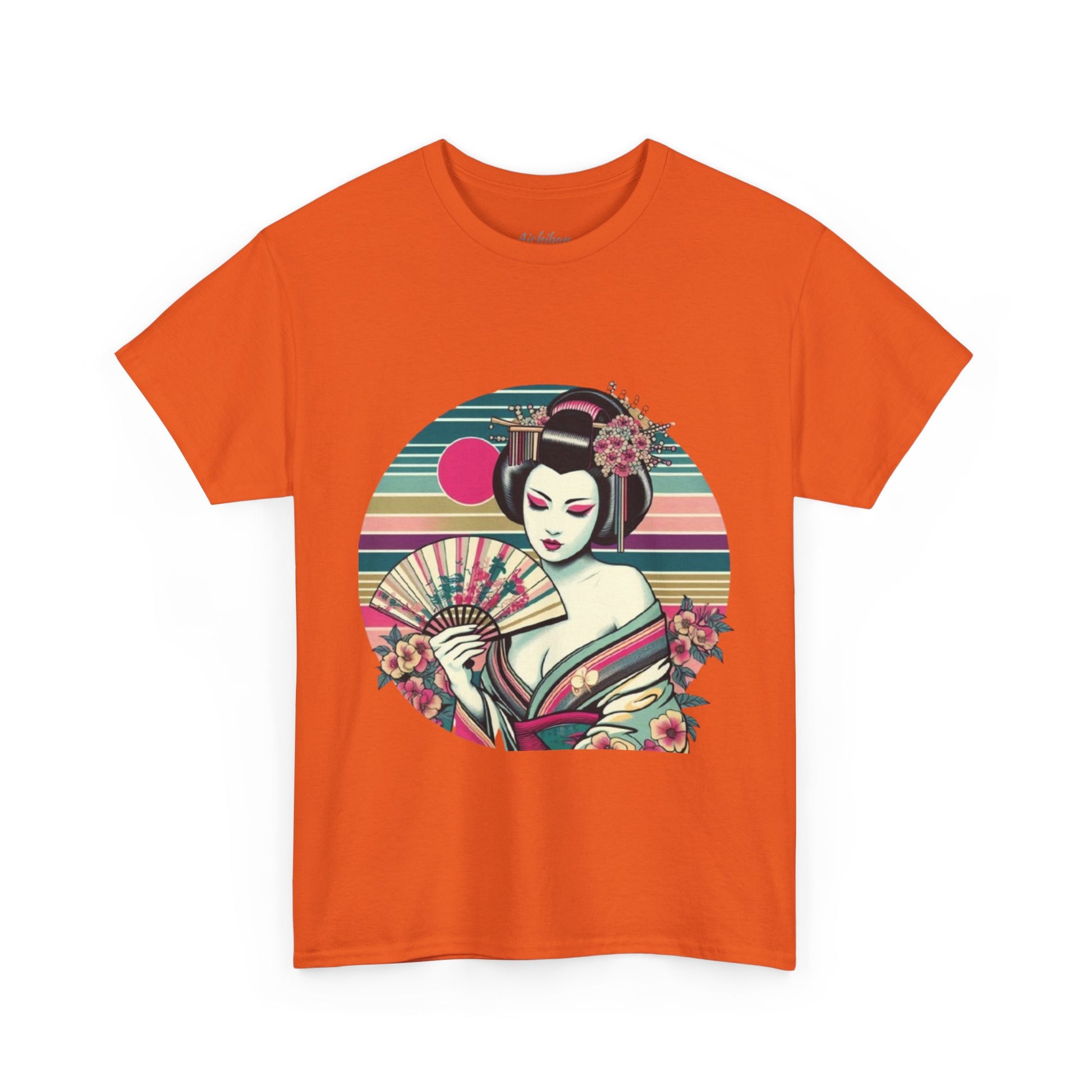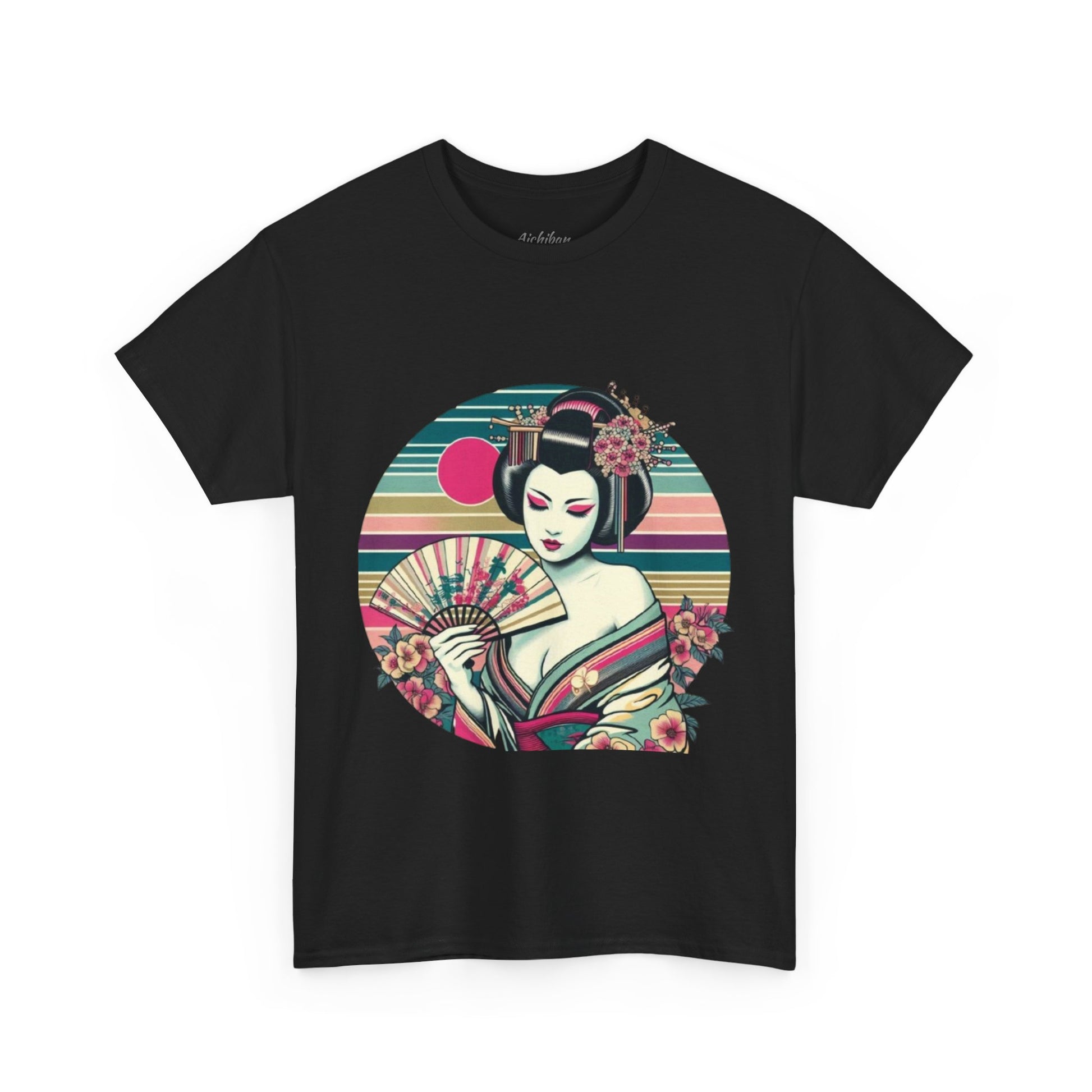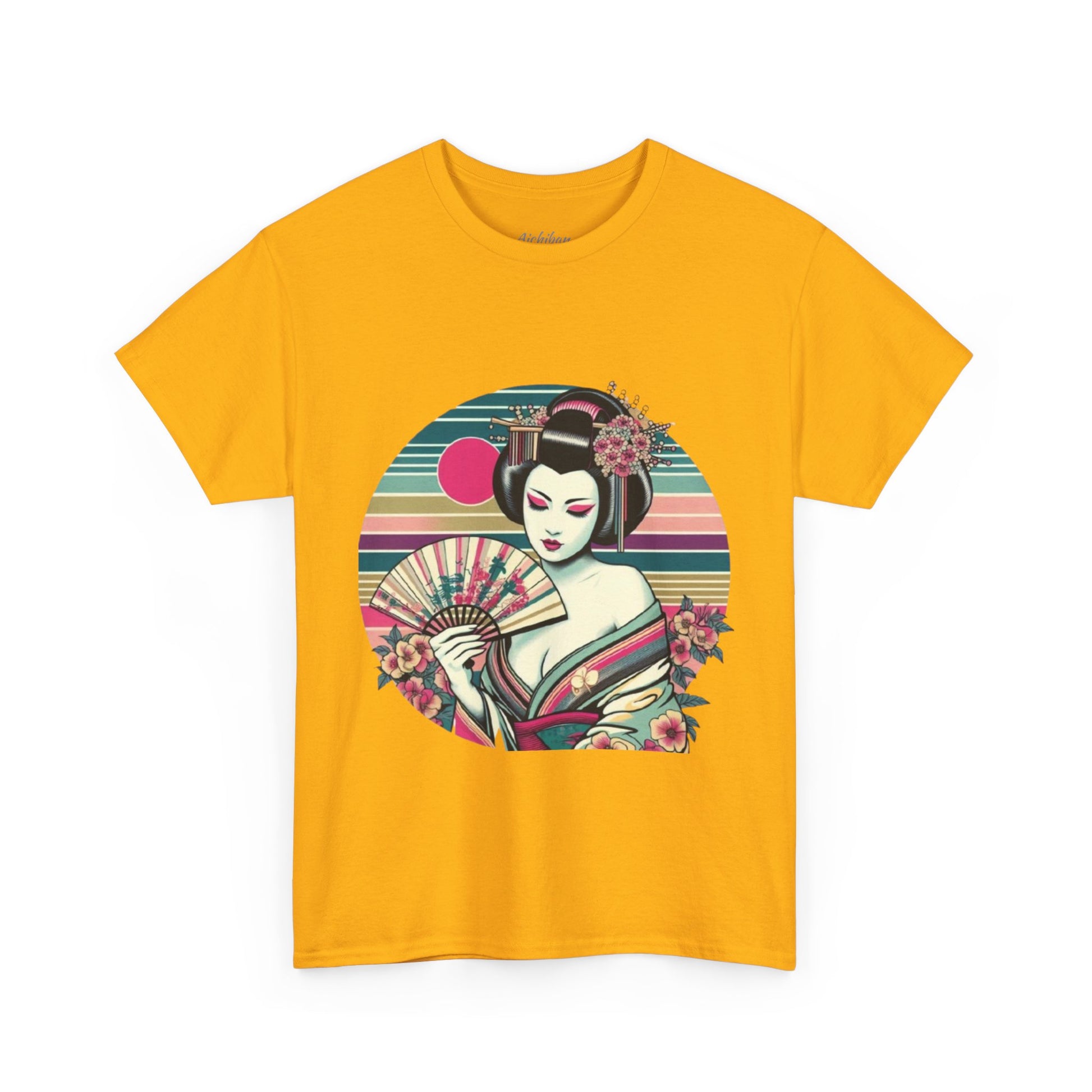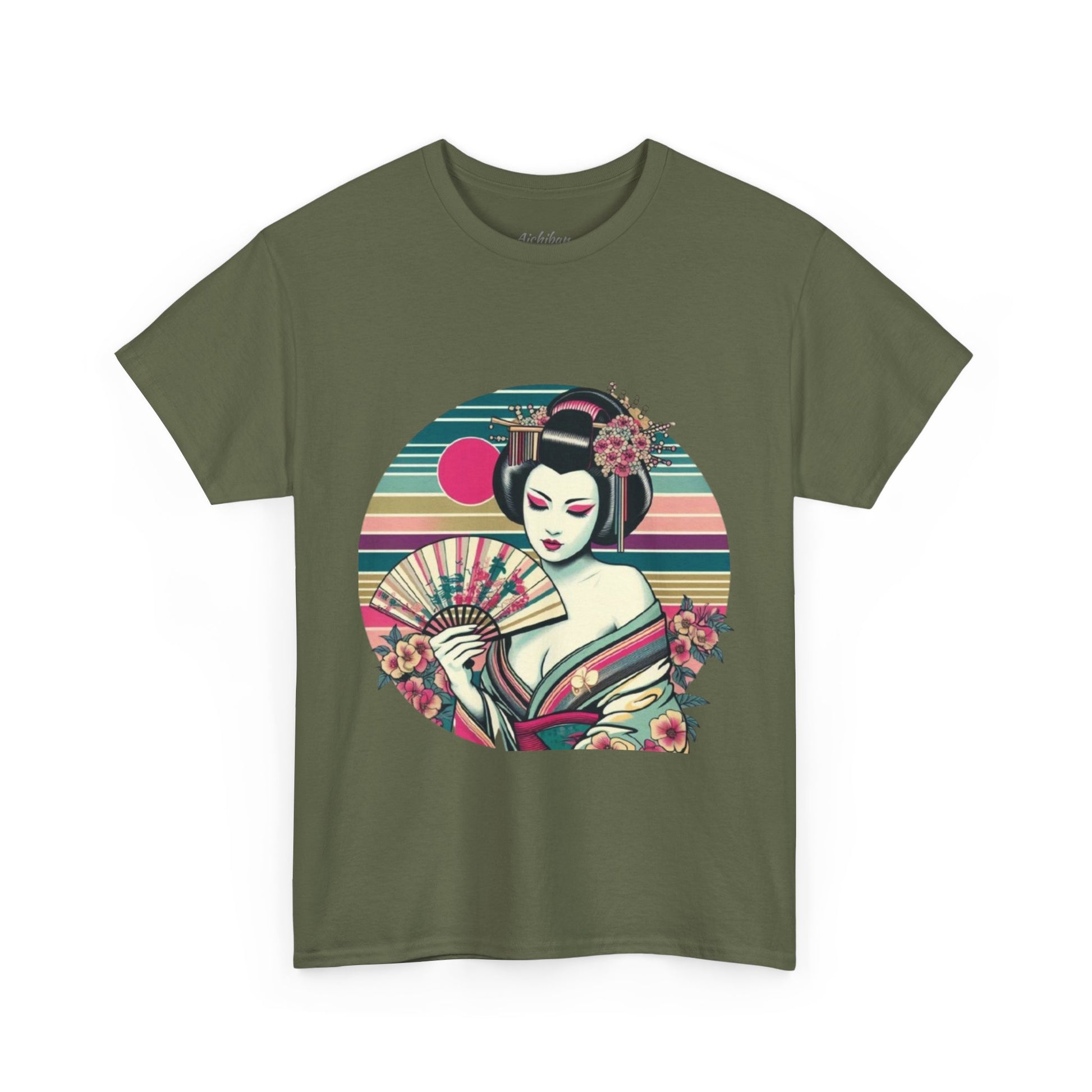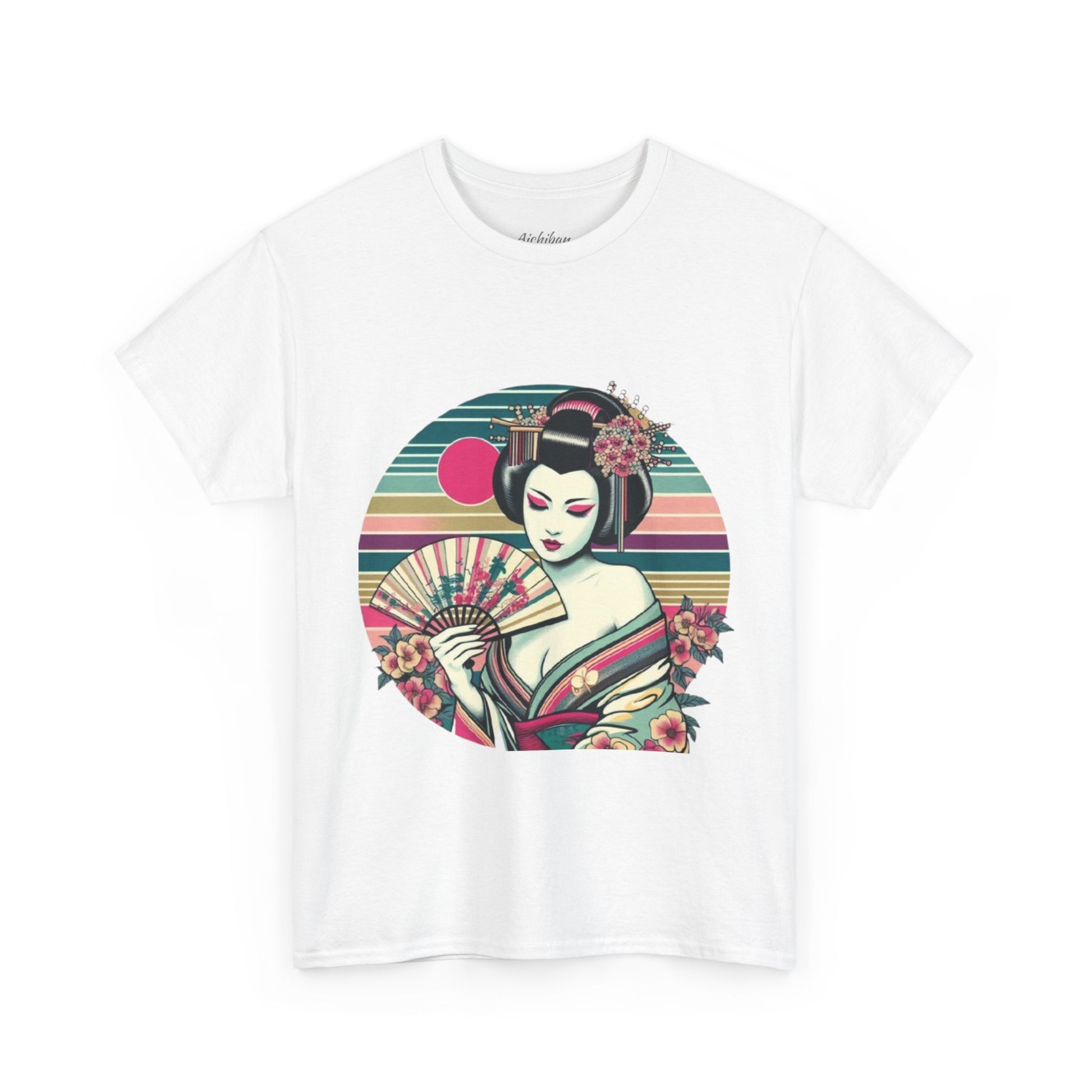 From the Peak Pastel Collection, the Geisha Sunset Tee showcases a graceful geisha in a soft-hued kimono, framed by a pastel pink and teal sunset. This tee blends traditional Japanese beauty with a calming retro aesthetic, perfect for a subtle yet stylish statement.